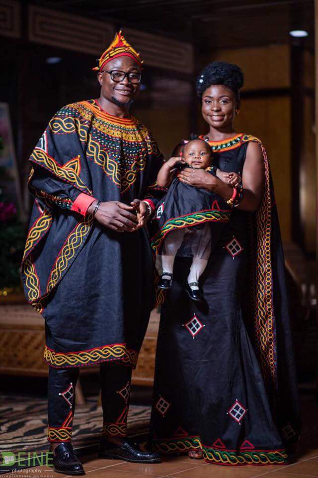The bride looked like a royal princess in body-hugging black gown covered in a similar long traditional cape coat. She kept her hair raw and went for simple makeup as she smile brightly for her man. One could see from their smiles that their culture made them better together.