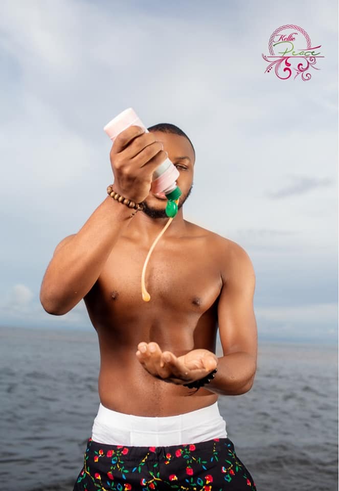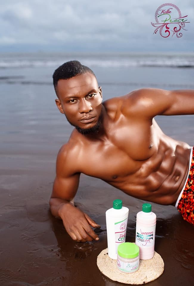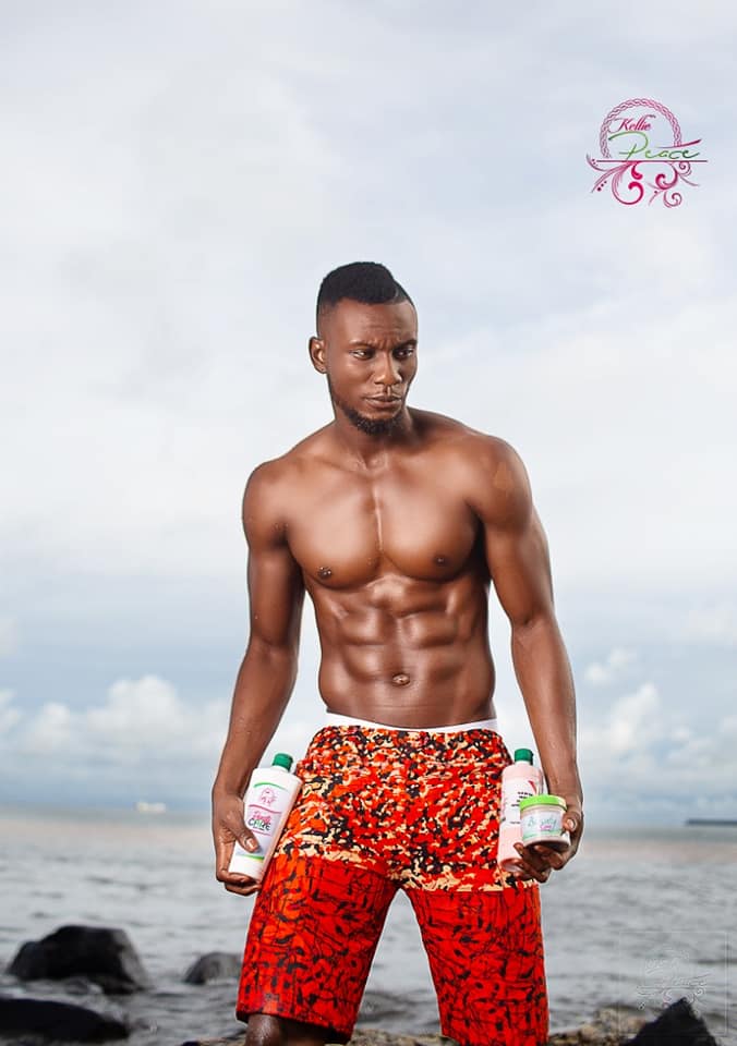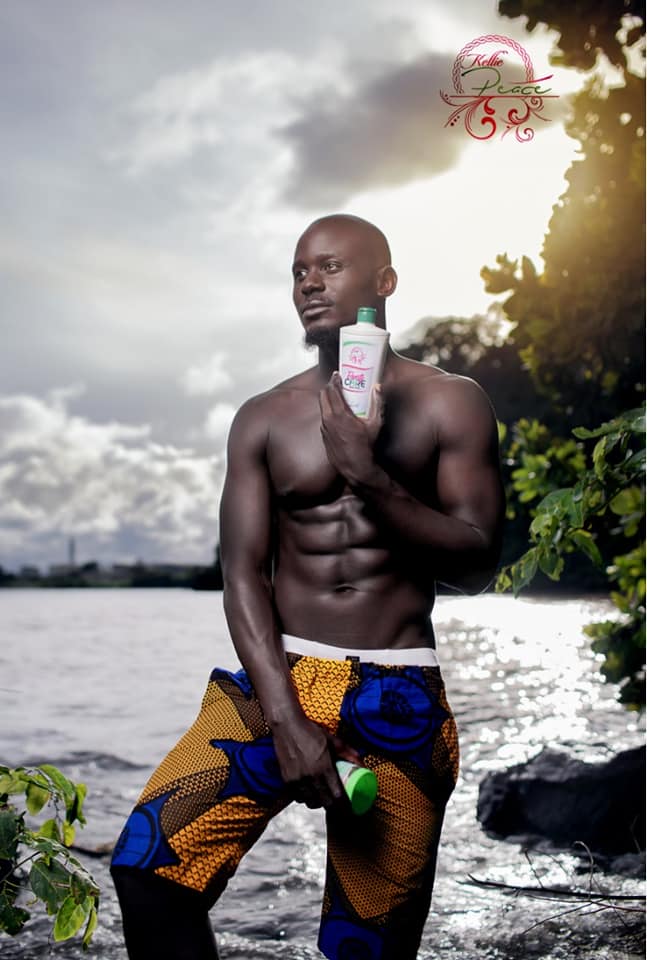 Cameroonian models, Sama Tanya, Makala Courtez Nganda and T. Brize Banseka are all going shirtless for a new beauty skin care product for men.