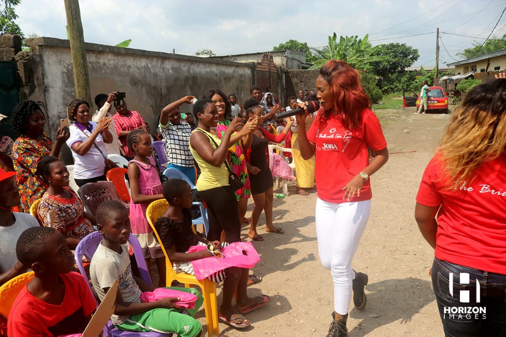 The singer did not only carry along basic needs like foodstuff and toiletries, but she also brought herself to perform her latest song, titled, ‘Real Love’ with the excited crowd.